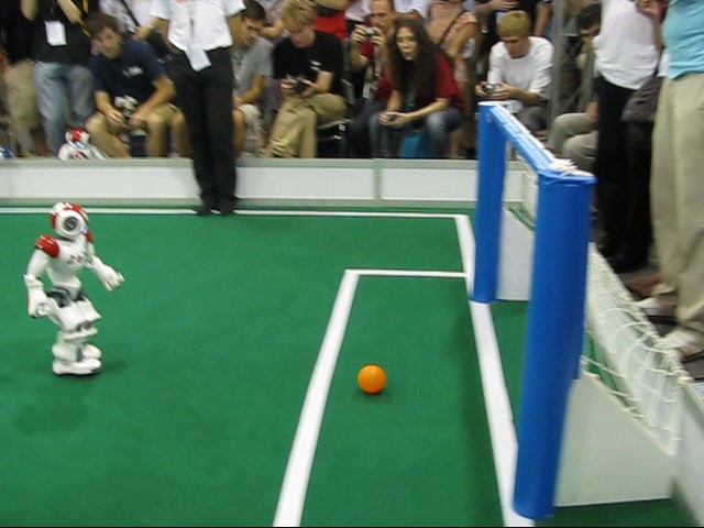 based on other criteria, the NUManoids were ranked 1st in their pool. We advanced through the quarter final and semi final without conceding any more goals, and came to face strong opposition in the final from the combined Georgia Tech-Carnegie Mellon (GT/CMU) team. GT/CMU had also scored several goals in the finals round and although slower than the NUManoids, had strong skills in lining up and kicking the ball. |